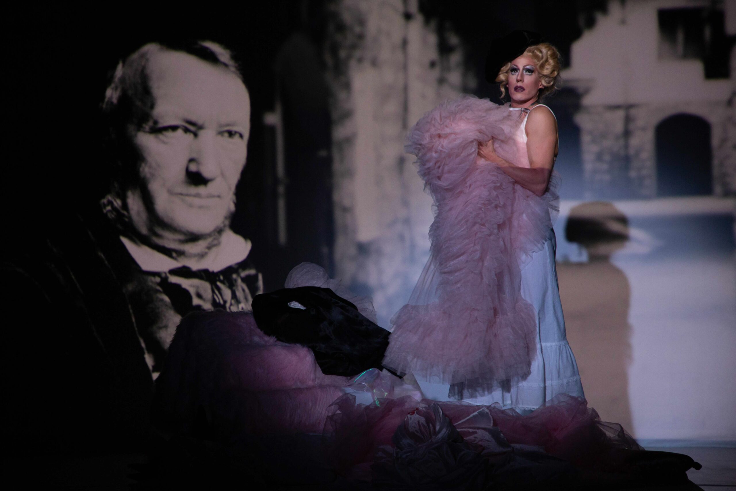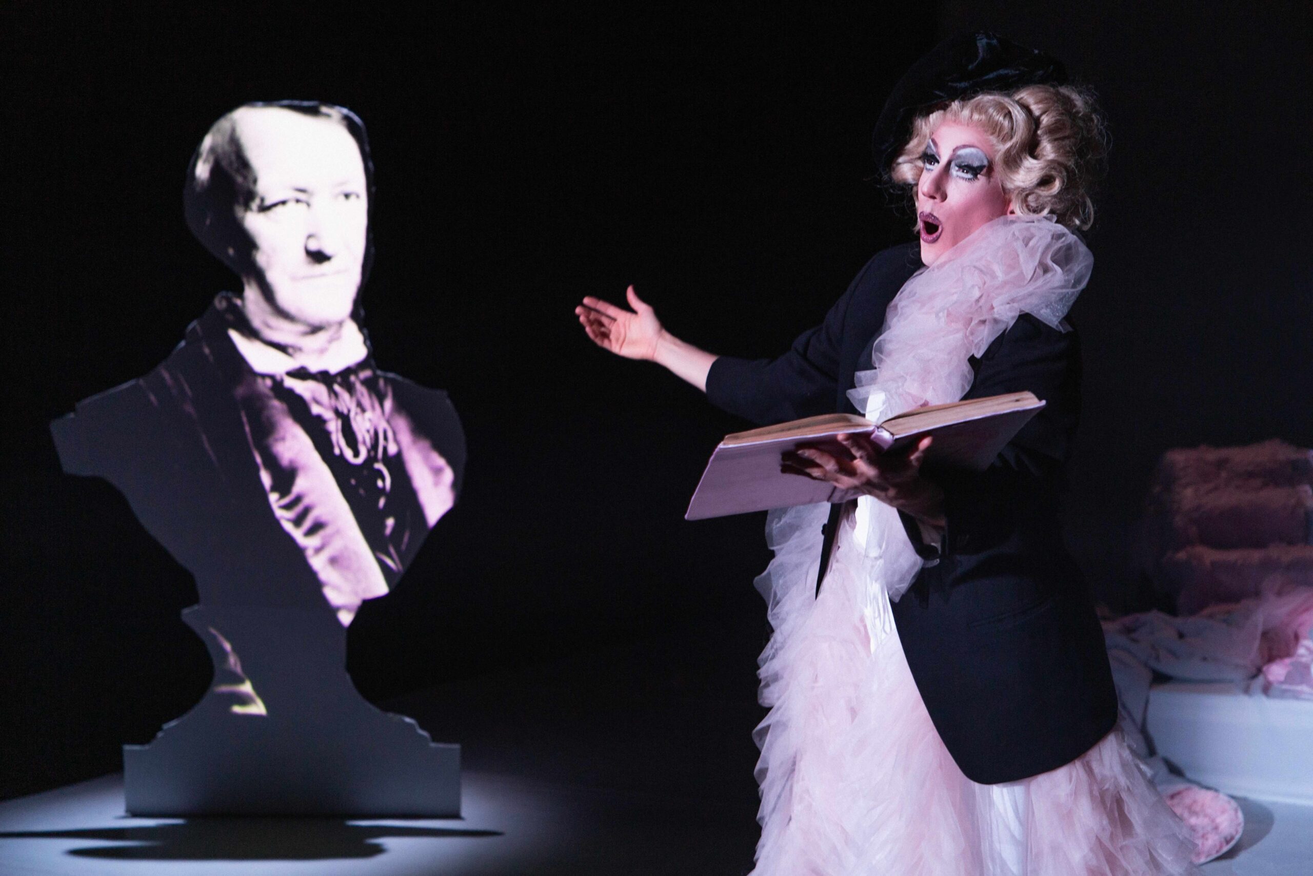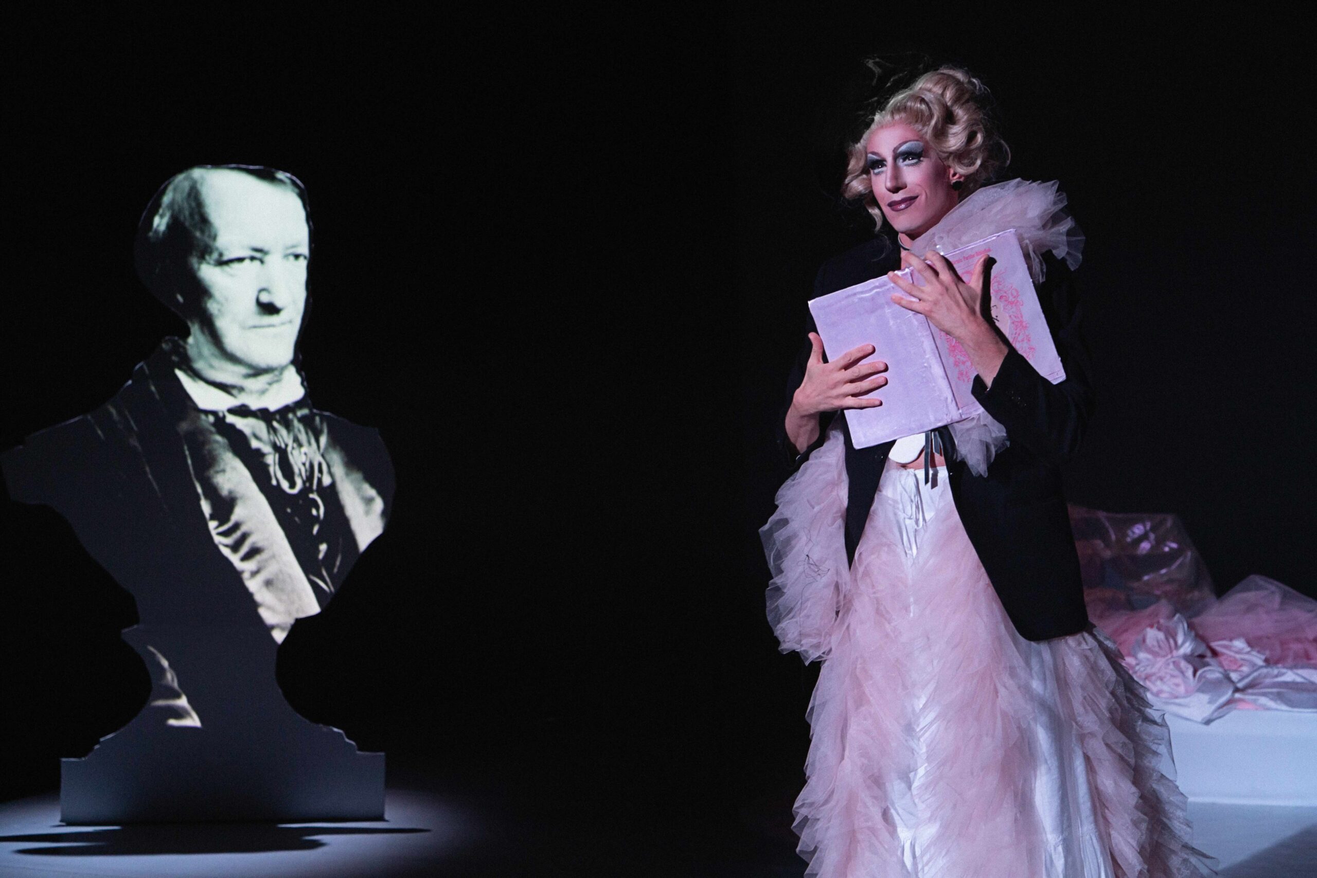 Richard Wagner is a drag queen, and Shlomi Moto Wagner’s great-grandfather was her drag mother. Together, they share not only family roots, but also a drag heritage in the Jewish House of Mazeltov. This pseudo-documentary musical theater performance delves into forgotten rumors and repressed facts about Wagner’s personality: his obsession with pink, the scandalous satin orders, and the question of whether hiding his desires was related to the hatred he simultaneously projected onto the world.